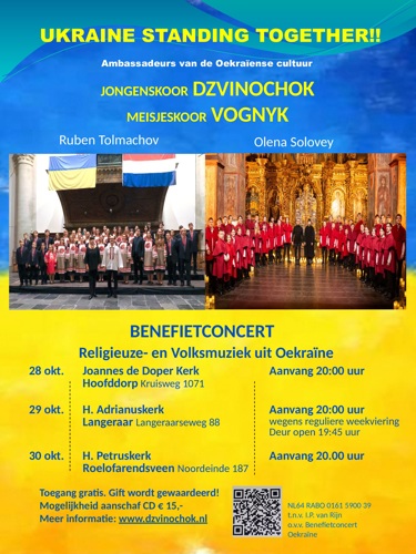 Jongenskoor Dzvinochok (Klokje) en meisjeskoor Vognyk (Vuur), twee topkoren uit Kyiv, laten van zich horen in Langeraar en Roelofarendsveen.
