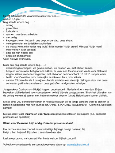 Uitnodiging benefietconcert voor Oekraïne